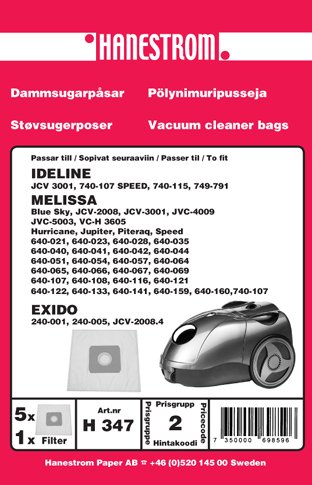 Imurointipussi MELISSA JCV-2008, VC-H3605 on korkealaatuinen suodatinpussi, joka on suunniteltu erityisesti MELISSA-imureille. Se takaa tehokkaan pölynpoiston ja puhtaan sisäilman. Pussi on helppo asentaa ja poistaa, mikä tekee imuroinnista vaivatonta. Sen kestävä rakenne varmistaa pitkän käyttöiän ja luotettavan toiminnan. Imurointipussi on yhteensopiva myös muiden imurimallien kanssa, kuten VC-H3605, mikä lisää sen monikäyttöisyyttä. Pussin käyttö parantaa imurin suorituskykyä ja ylläpitää kodin hygieniaa. Se on olennainen osa kodin siivoustarvikkeita, joka takaa tehokkaan ja miellyttävän imurointikokemuksen.