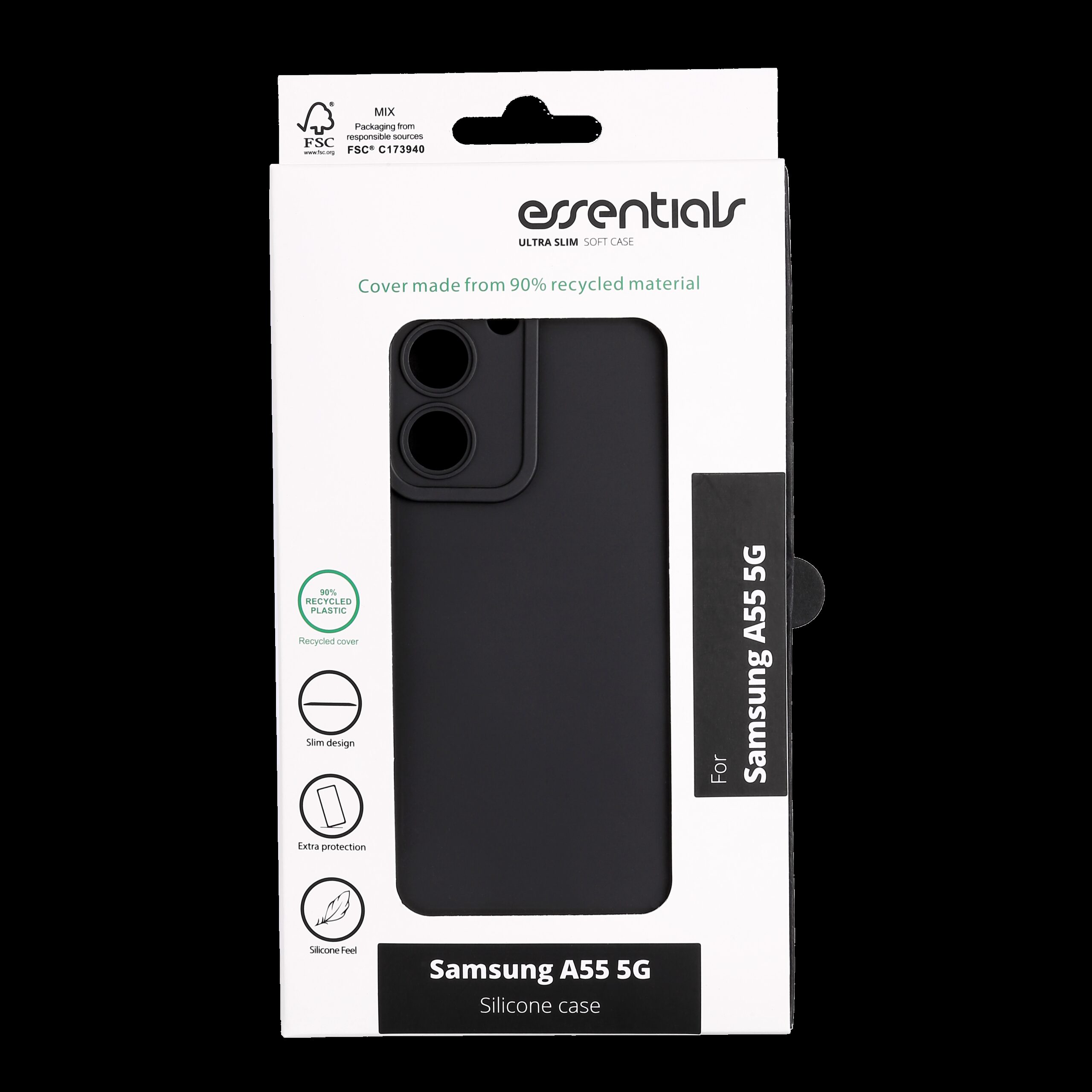 Samsung Galaxy A55 5G:n kierrätetystä silikonista valmistettu takakansi, musta