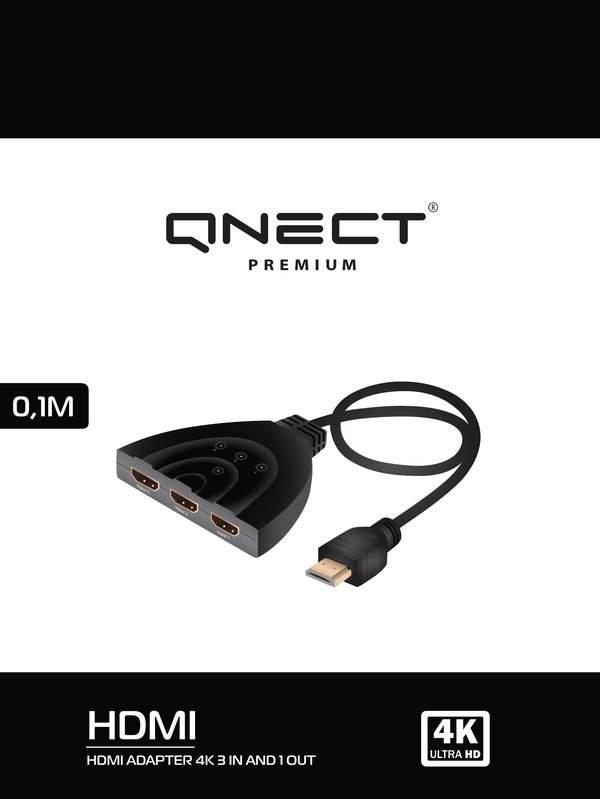 / Sovitin HDMI 3 sisään – 1 ulos 4K Pigtale, 0,1 m