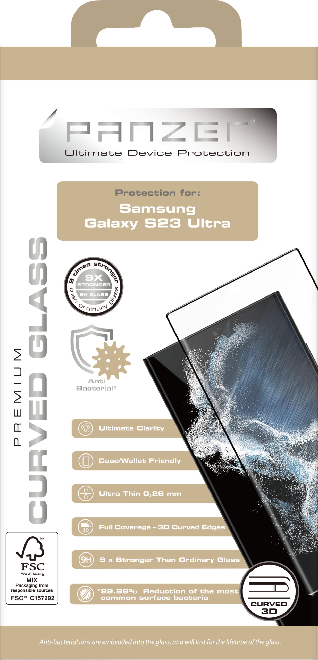 PANZER? Premium Curved Glass -näytönsuojakalvossa on erittäin sileät ja pyöristetyt reunat, jotka peittävät ja suojaavat näytönsuojaa jättämättä likaa tai pölyä kerääviä rakoja näytönsuojan ja näytön väliin. Lasi on 0,26 mm ohut, mikä tekee näytönsuojasta erinomaisen.